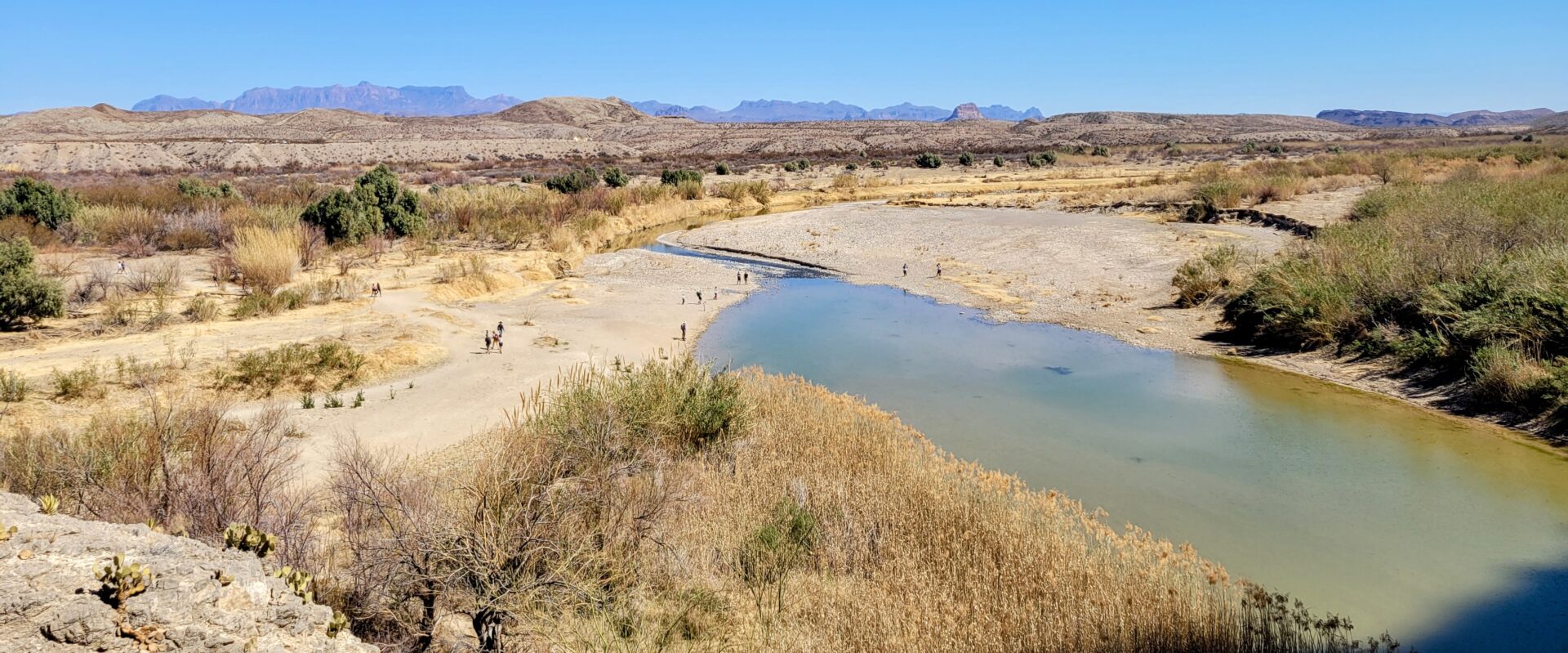 After the stream the trail starts climbing up steps in the rocks, and before entering into the canyon, there’s a nice view looking back at where you’ve been. In the photo below on the right, the people on the right side of the river had crossed over just so they could say that they were in Mexico.