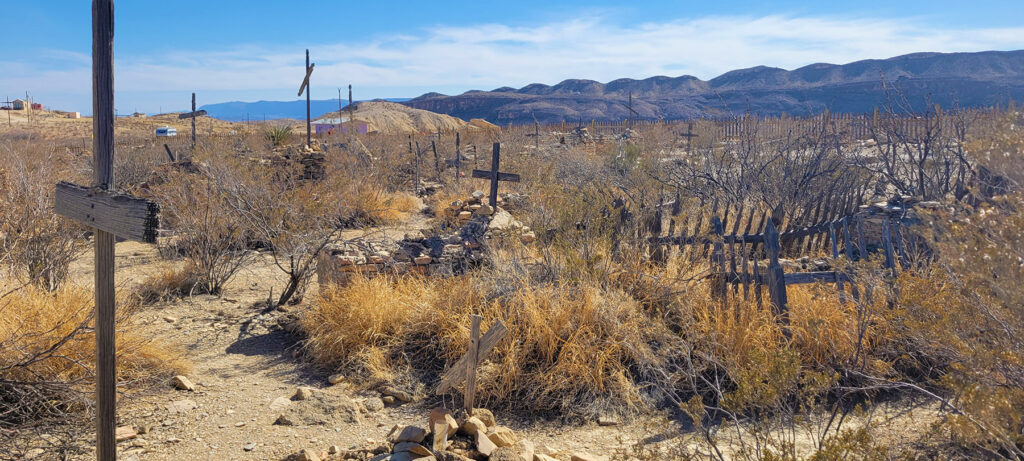 Some people might think cemeteries are only for visiting deceased loved ones, but for me they are a glimpse into the lives of people in the past and sometimes they are also a window into other cultures. Terlingua cemetery was unlike any I’ve ever seen. Many of the graves were simple graves with pieces of wood made into a cross but nothing indicating who was buried there. I believe these were the older graves (early 1900’s) from when Terlinga was established as a mercury mining town.